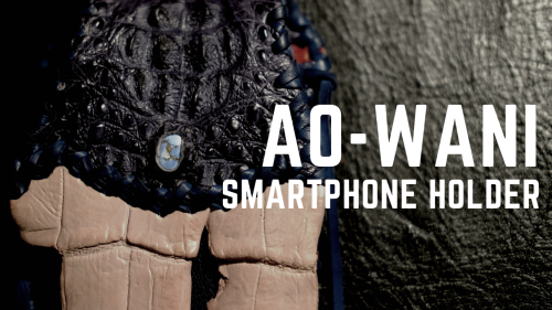 クセの強い スマートフォンホルダー”AO-WANI”(エキゾチックレザー・ワニ革・ターコイズ・オーダー・革製品)
