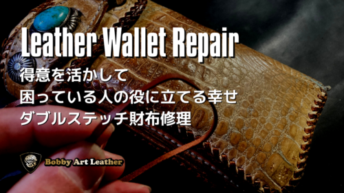 レザーはエイジング、心はアンチエイジング♪レザーアートクリエイター照下”Bobby”稔(テルシタ”ボビー”ミノル)の手仕事が生み出す”美”と”機能”を兼ね備えた”唯一無二”のレザーアイテムを提供するBobby Art L … 続きを読む ダブルステッチ財布修理・得意を活かして困っている人の役に立てる幸せ(巻きかがり・レースステッチ・ウォレット・Wallet)