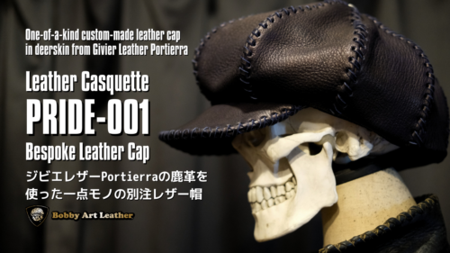 ジビエレザーPortierraの鹿革を使った一点モノの別注レザー帽”PRIDE-001”Bespoke Leather Cap(オーダーメイド)