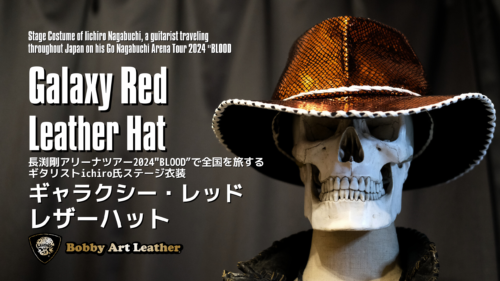 ギタリストichiro氏 ステージ衣装 ギャラクシー・レッド・レザーハット (長渕剛アリーナツアー2024″BLOOD”)