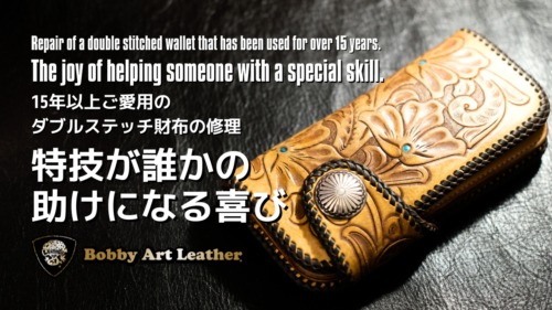 日本中にたくさんのレザーブランドや革職人が存在しているにも関わらず、このブログに辿り着いて頂きましてありがとうございます。今回もインターネットを通じてステキなご縁をいただきました。 レザーはエイジング、心はアンチエイジン … 続きを読む 特技が誰かの助けになる喜び・15年以上ご愛用のダブルステッチ財布の修理(巻きかがり・レースステッチ・ウォレット・Wallet)