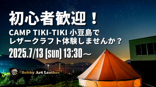 レザーはエイジング、心はアンチエイジング♪手仕事が生み出す”美”と”機能”を兼ね備えた”唯一無二”のROCK系レザーアイテムを提供するBobby Art Leather®︎[ボビーアートレザー®︎]代表レザーアートクリエ … 続きを読む 初心者歓迎!camp tiki-tiki 小豆島でレザークラフト体験しませんか?
