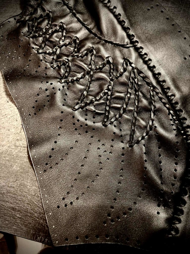 ハンドレーシングという手法は機械では再現できない工程で実に手の掛かる縫製技法です。