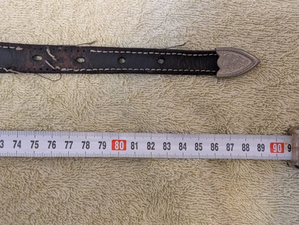 届いたベルトを手に取ると、金具パーツだけはまだ力強く生きていました。
