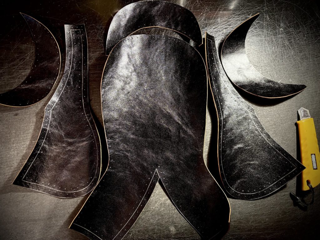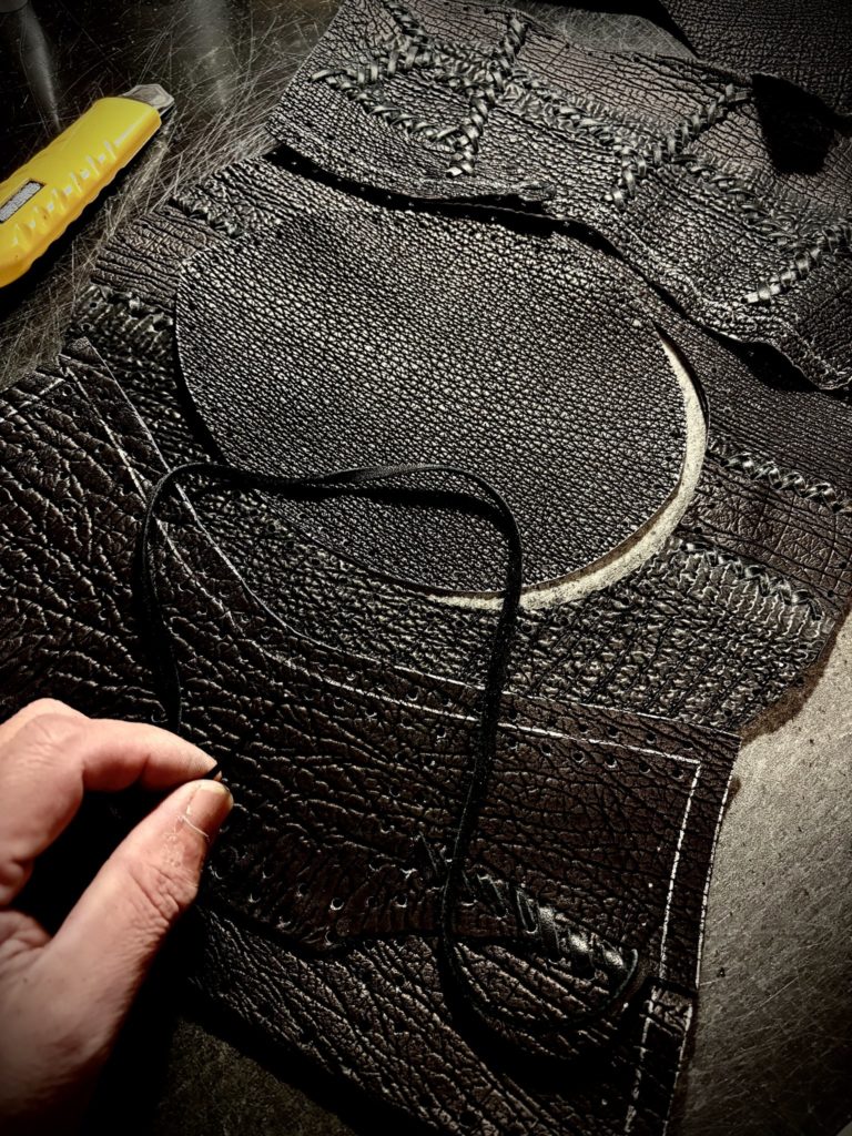 触っていて良い革だなぁって感じる時のひとつが、刃を入れた時心地よさを感じる時です。パーツをカットする時、革紐を一本一本カットする時・・・実に心地良いのです。