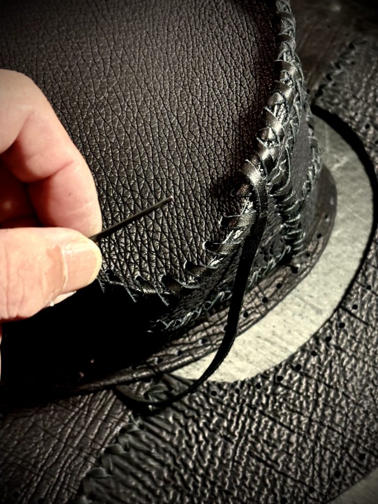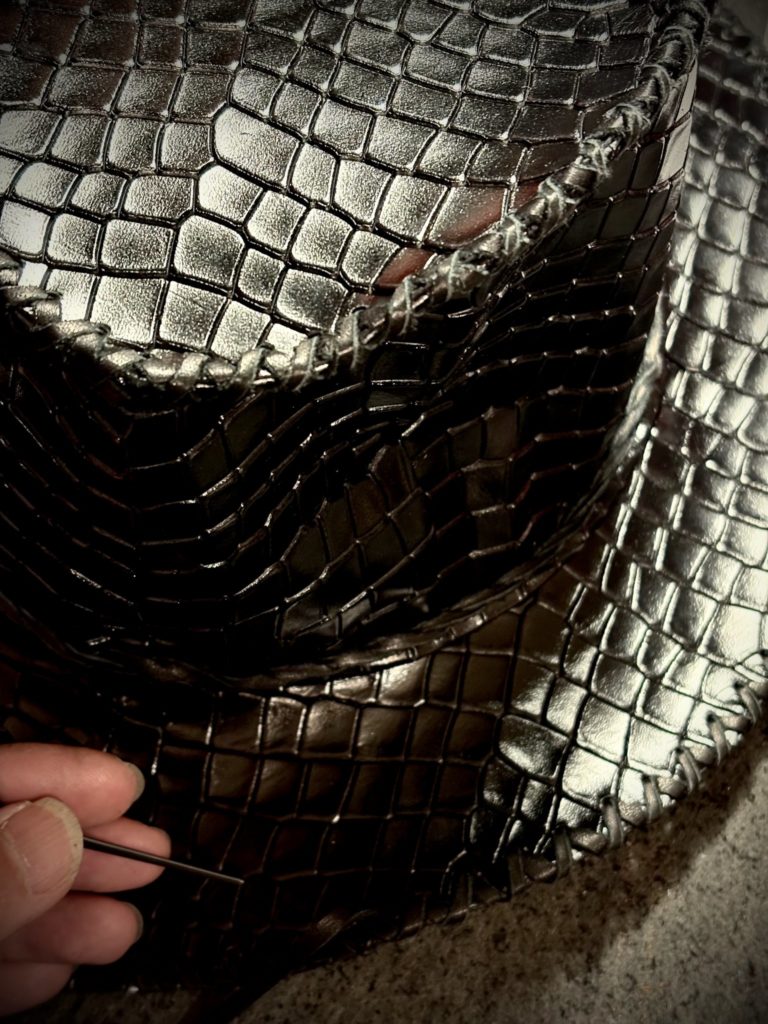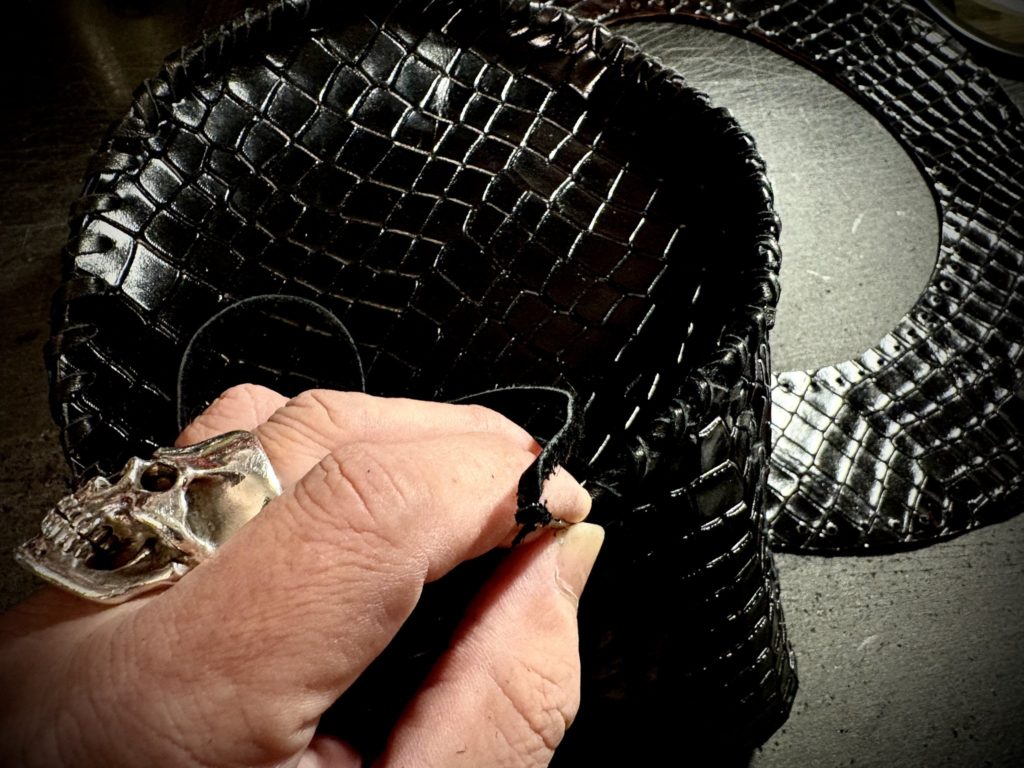 ハンドレーシング(ハンドステッチ)の技術のみでハットを作り出せることが