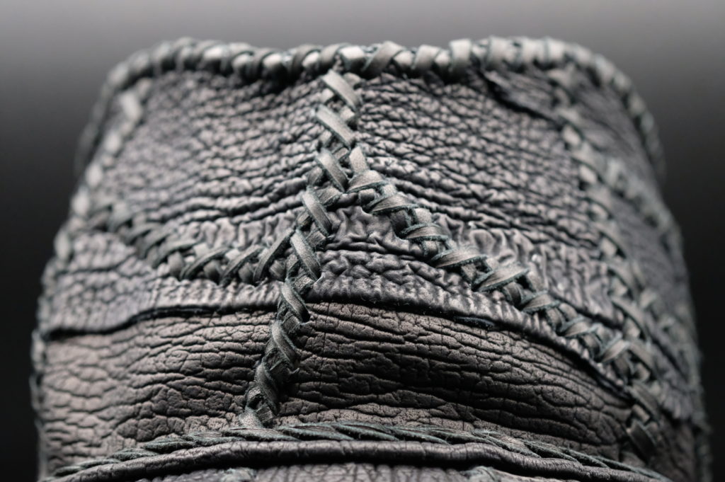 ・被ったときに自然なドレープとシボが出る革の厚み