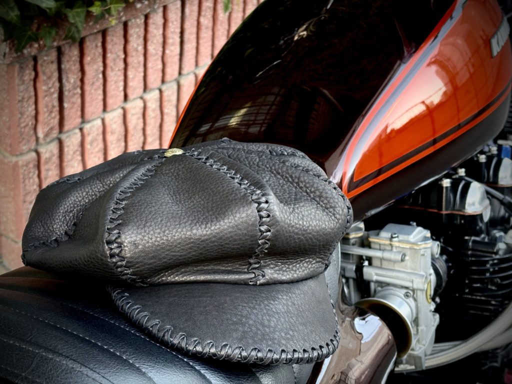 このたび、レザーファッション好きのお客さまとアトリエで保有しているレザーの中から茶芯の馬革をお選びいただき別注オーダー作品として制作させていただきました。